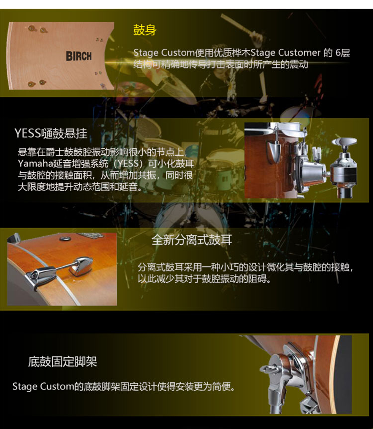 YAMAHAヤマハドラムスペクターの星tour customオリジナルサウドラック専门5つのドラムセト【原木色】+パテ101 ha 4枚