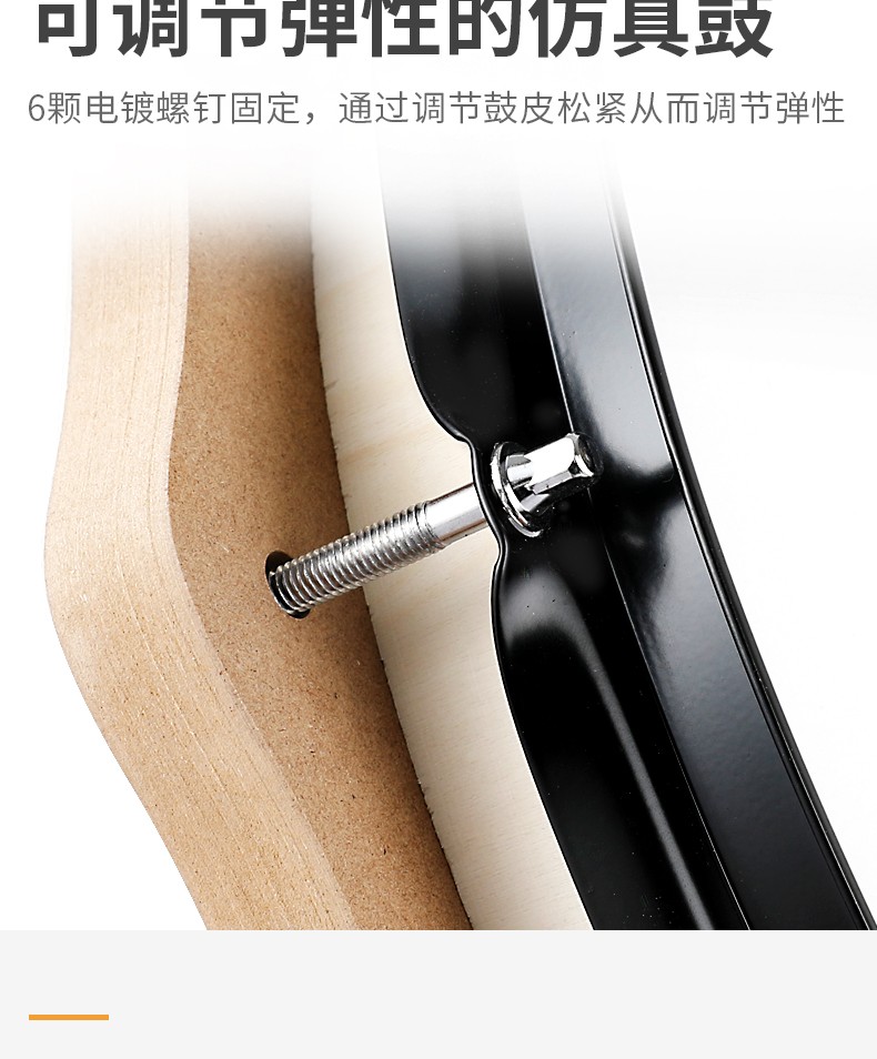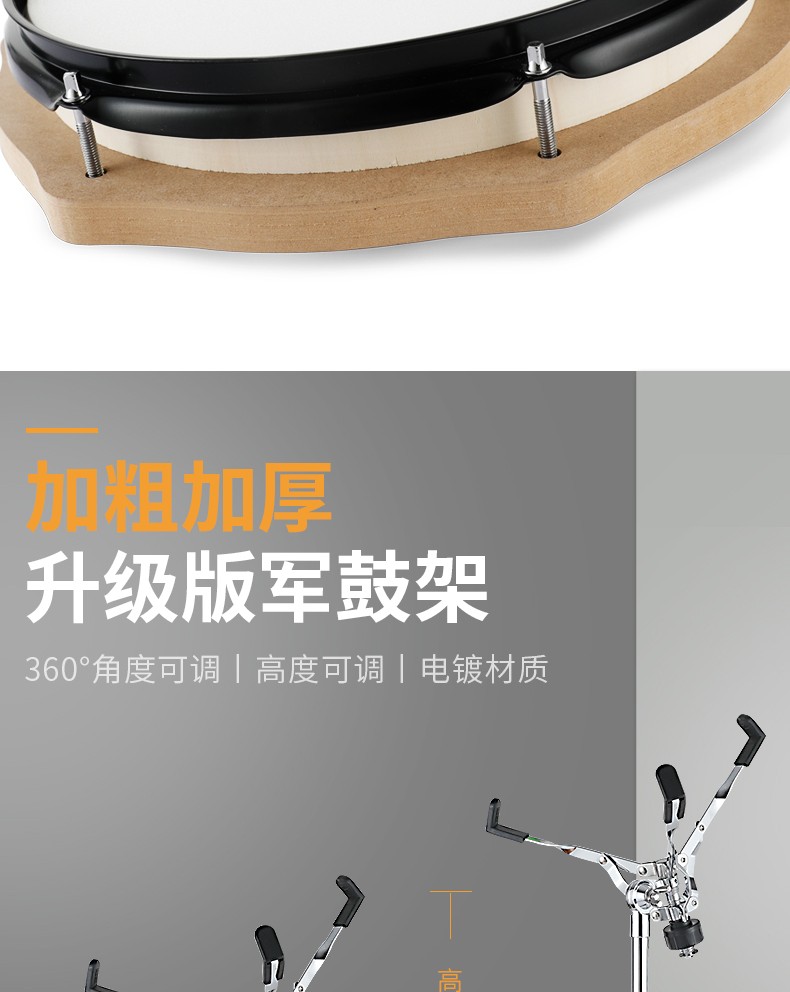 これは半鼓半口ドラムで、打つ音はまだ大きいです。体が大きいので、ドラムの皮に変えたら本物のドラムと同じかどうか分かりません。練習は打撃感でいいです。重いので、立派な棚を作ります。