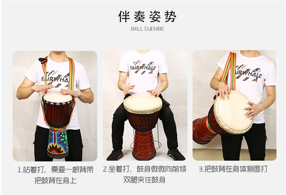 アフリカン鼓寸子供初心者の麗江さんが羊の皮の手鼓楽器を演奏します。