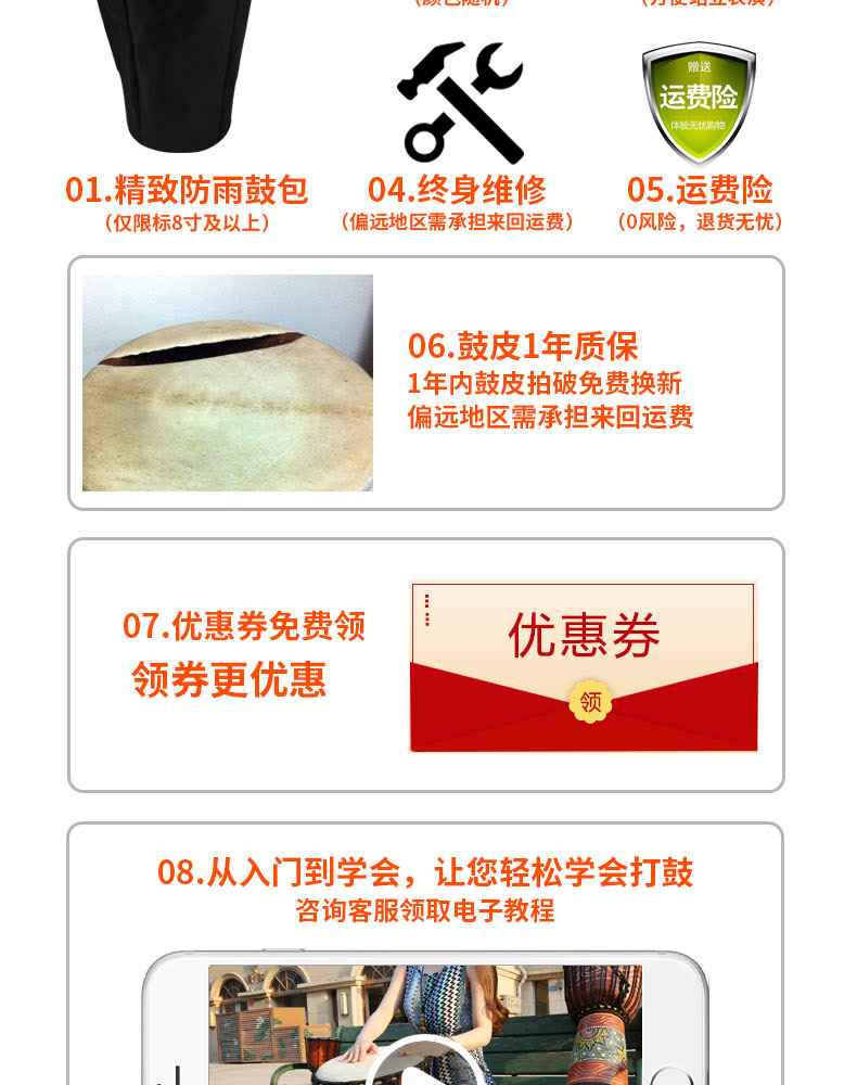 手鼓アフリカ鼓麗江10寸12寸子供初心者8寸幼稚園大人非州羊皮手拍鼓小八寸彩色絵の具アクセサリー+【運賃保険】