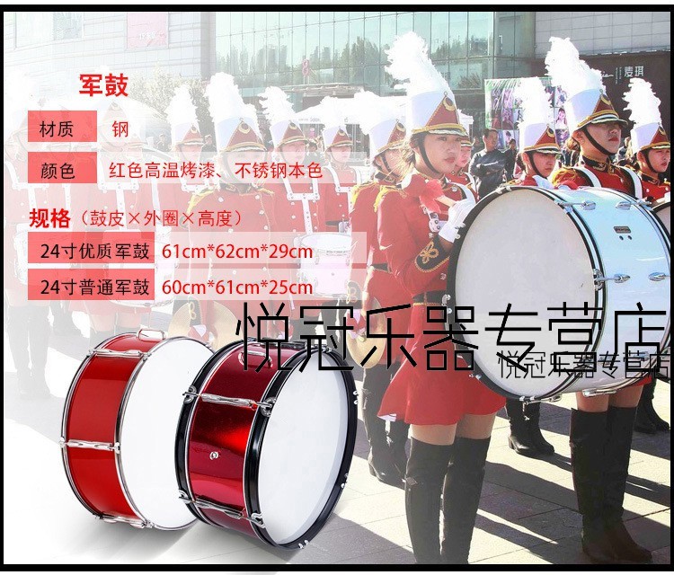 新宝大軍ドラムムス22/24寸軍鼓楽器軍楽ラッパ太鼓成人洋鼓(銀色)22レンチ(58*29)ドラムム+バーンド+つばち
