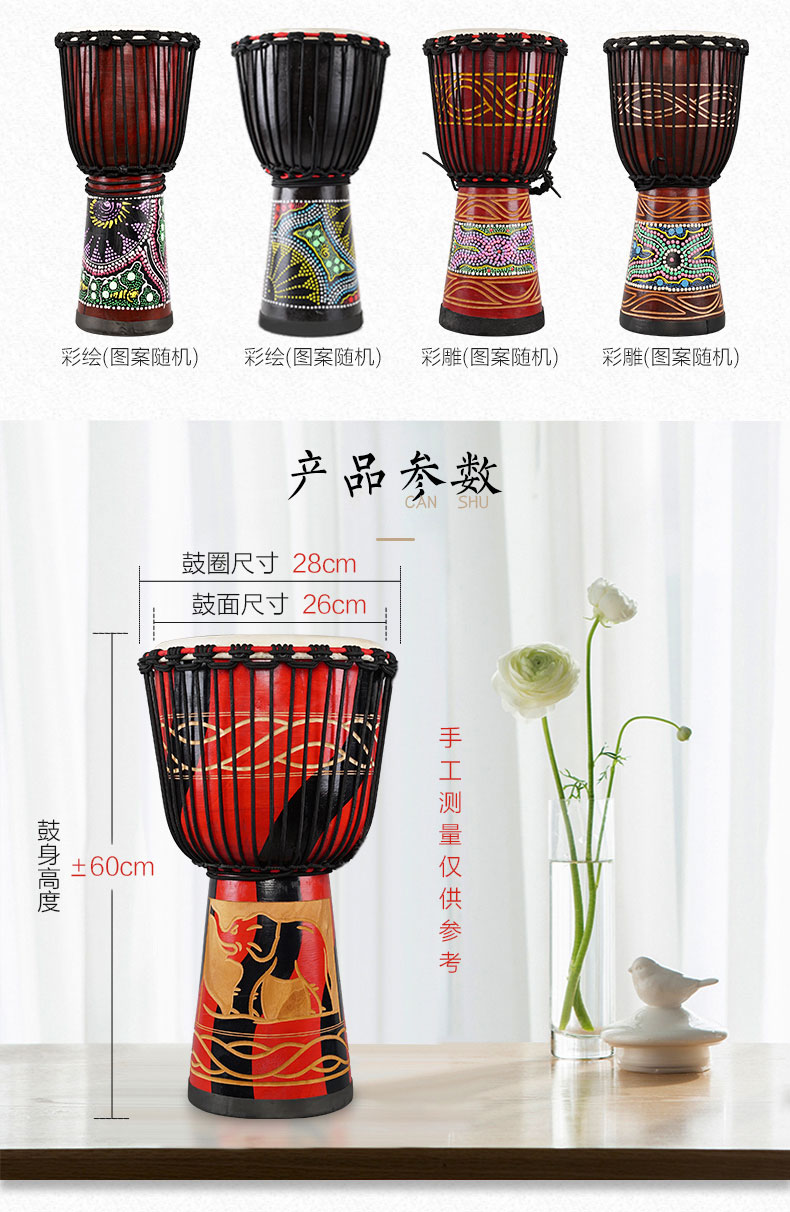 アフリカーのドラマの8寸10寸の12寸の云南丽江の初心者の大人の子供供は羊の皮の手を演奏してドラママの音楽器の标识の10寸の赤い色の絵の金をした。