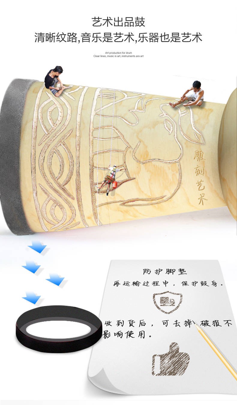 アーフルのドラマの子供の大人の初心者8 inチ10インチ12イ幼稚园の生徒の手でドラムを叩いて供の楽器の标准12インチーの雕刻の赤い象+