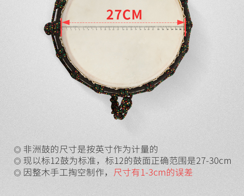 バリー(BYLA)手鼓アフリカン麗江8寸10寸12寸の児童初学演奏金贝鼓インドネネ丸太空山羊皮成人雲南学生鼓標10色絵原色+景品