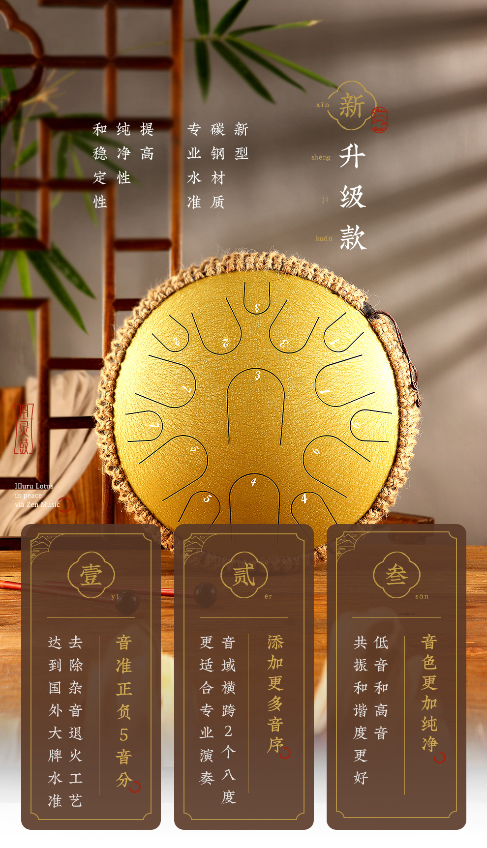 鲁儒hlul空霊鼓钢金13寸15音色空鼓钢ドラック初心者打楽器斑点赤