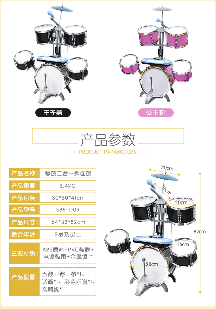 かわいい赤ちゃんQIAO WAO BAO BEIドラム子供初心者男の子供の子1-3-10歳のドラムムの大きさすードラはDJ琴の王女の粉を持ちます。