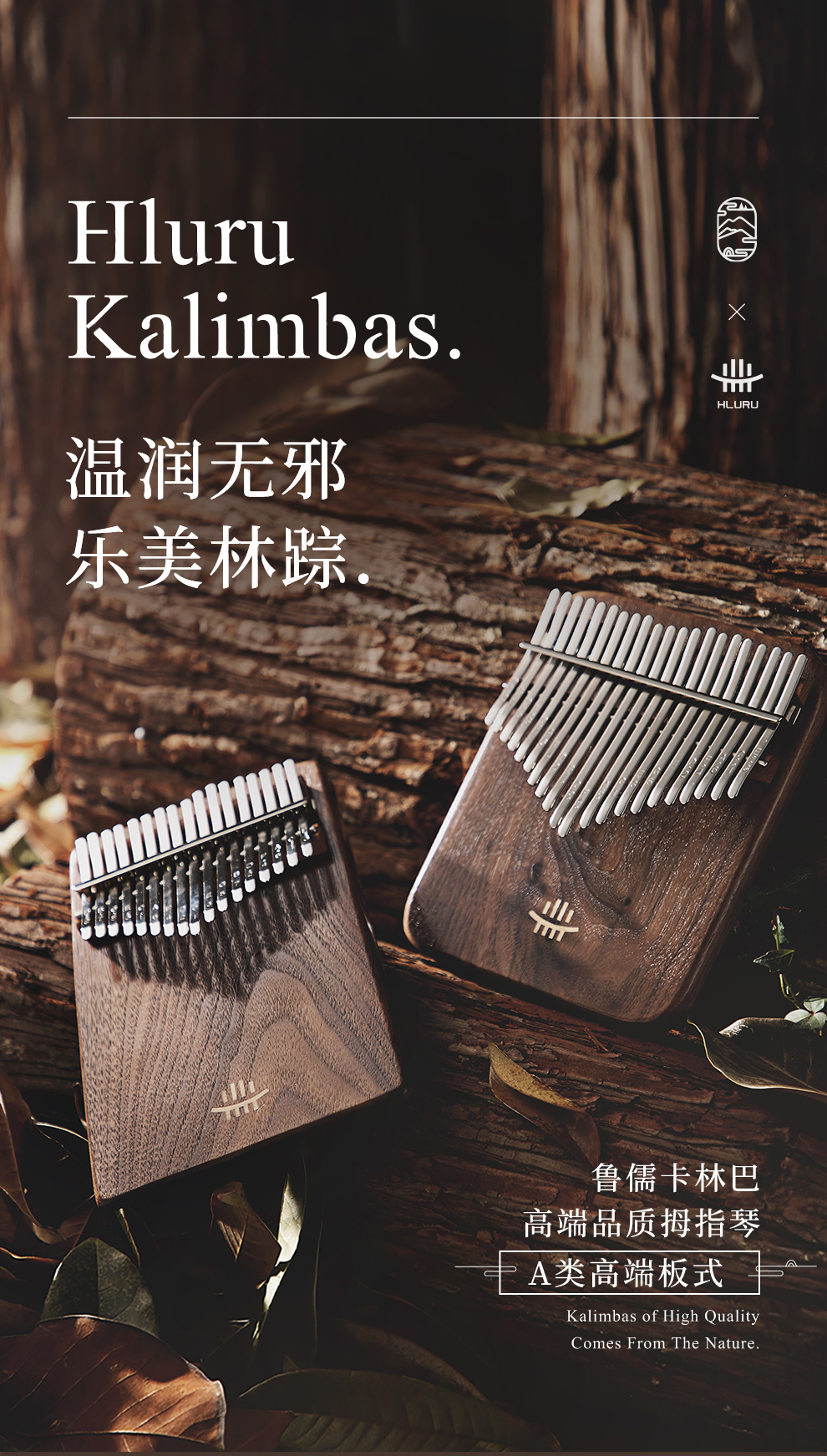 鲁儒hlull亲指琴カリン巴琴21音尊享板式加厚黒胡桃指琴打楽器kalimba接指ピアノ【尊享金】円弧式21音