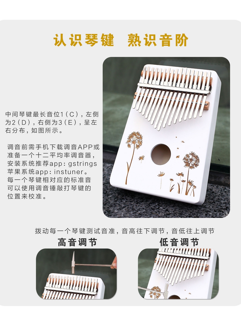 指の琴のカリバーの17音のカリンの琴の响きの音の初心者の入门の指の琴の白のカリバーの楽器の调音の槌