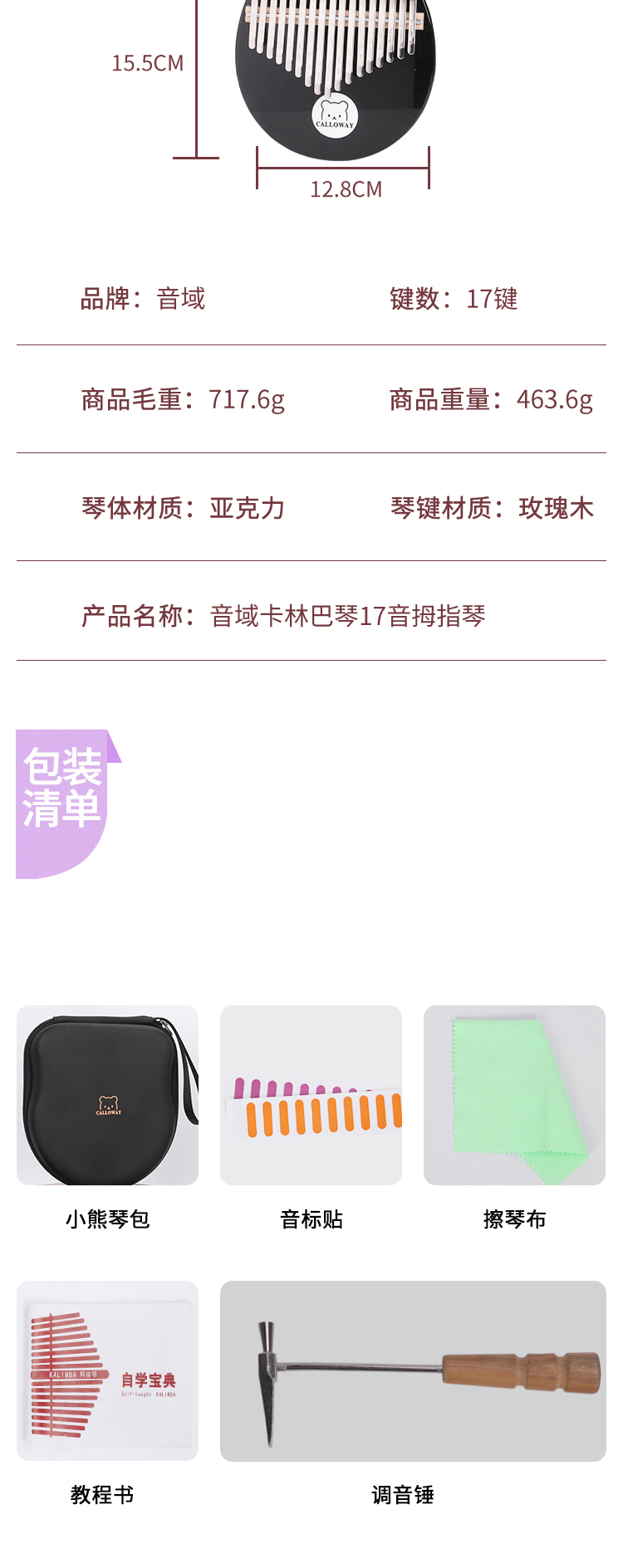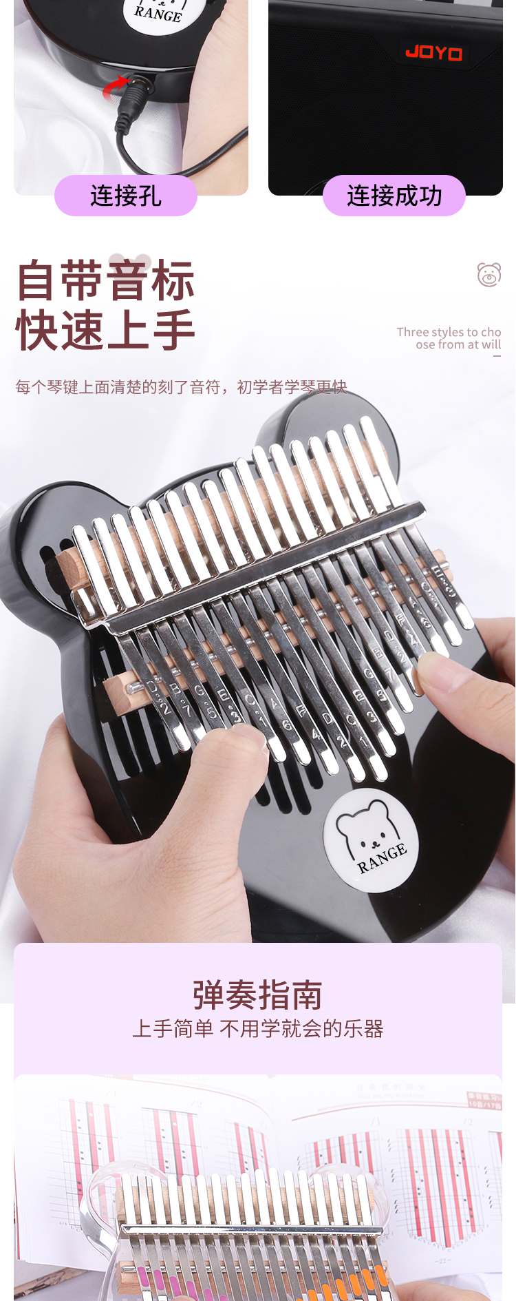 音域RANGEの亲指の琴のカリンのオルガンは初演奏の金を学习します。17音の指の琴の楽器は彼女に黒の水晶の熊をプロシュートします。
