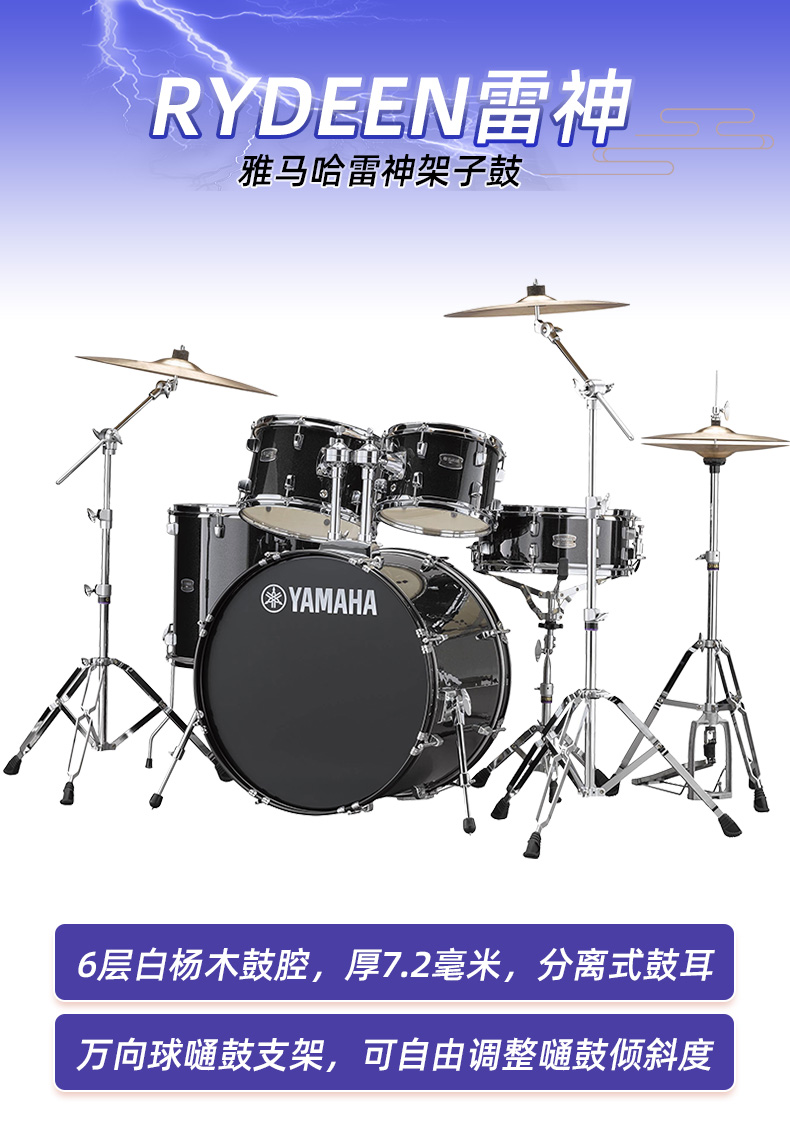 ヤマハドラムレシンRYDEENジャ成人初心者子供用クラス専门演奏原音ドラム演奏器yamaha五鼓三問+入力麦爾/paース4枚镲+礼装バケット+音質パンド