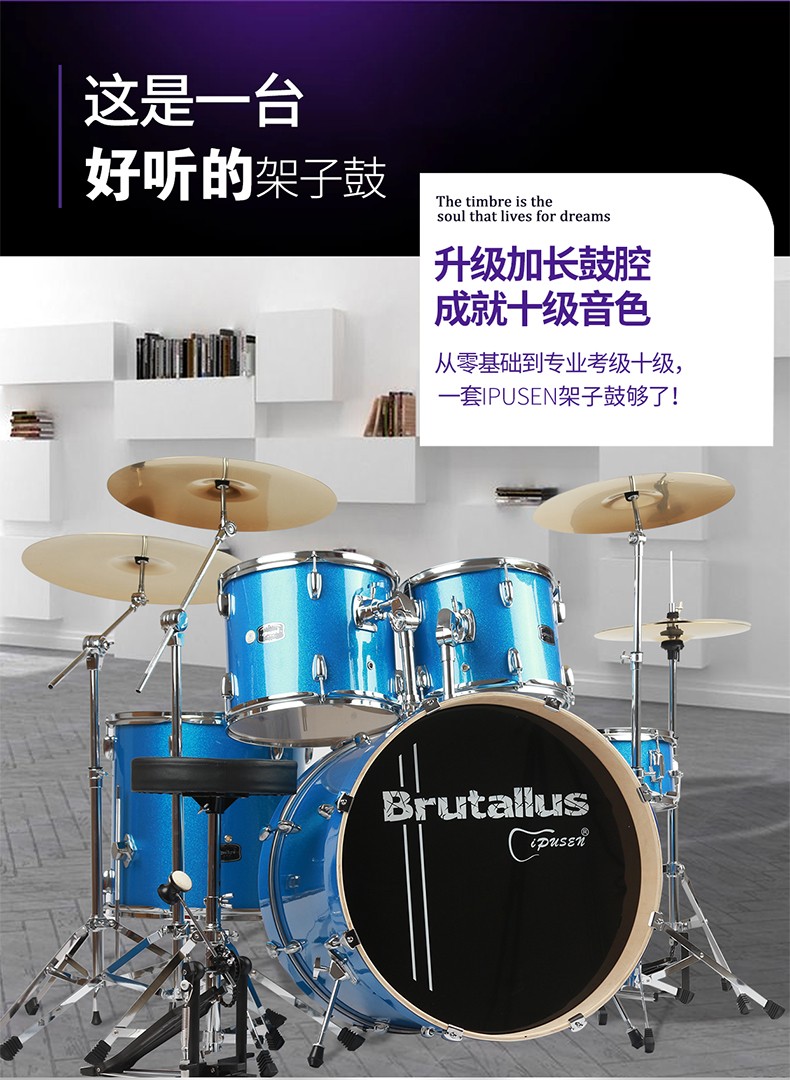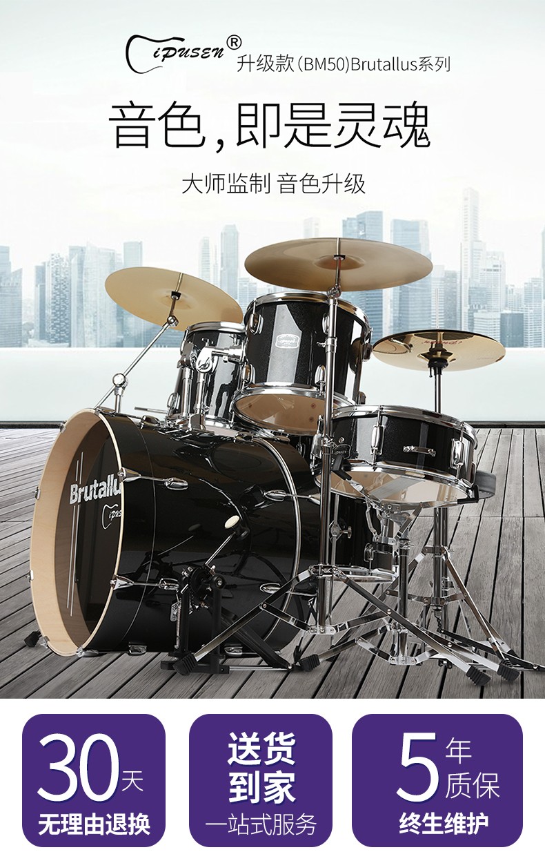 ipusen子供向了日本アドベンチャー専门攻10级演奏6歳以上10歳以上の大人のジャラム5ドラム3镲初心者入门独学习ドラームDS 30ラズビル(5ドラーム4问)