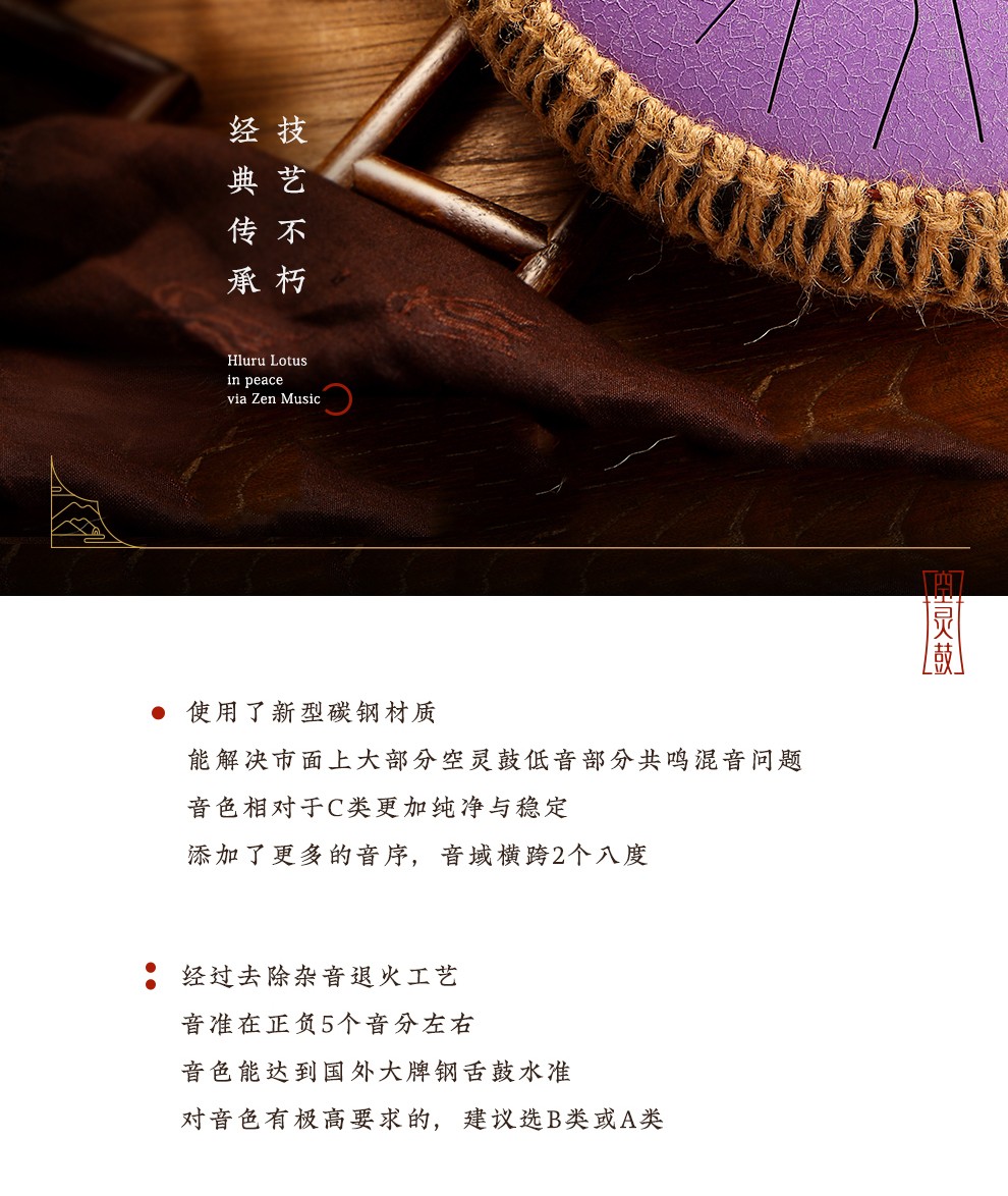 Hlurururu鲁儒空霊鼓14寸15音炭素钢铜制色空鼓13音12寸手ディック空明鼓初心者の大人のプロの打楽器太鼓文字プレゼ13寸15音炭素钢【斑点紫】ドラムセト+全套教学+无料字を彫る