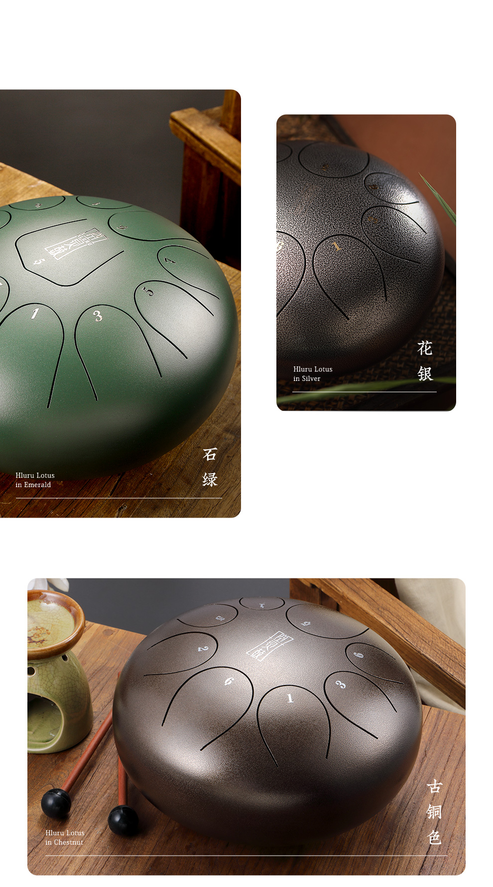 鲁儒hlull空霊鼓12寸11音色空ドラム初心者打楽器石绿色